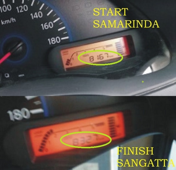 Angka km jarak tempuh kami dari Samarinda-Sangatta