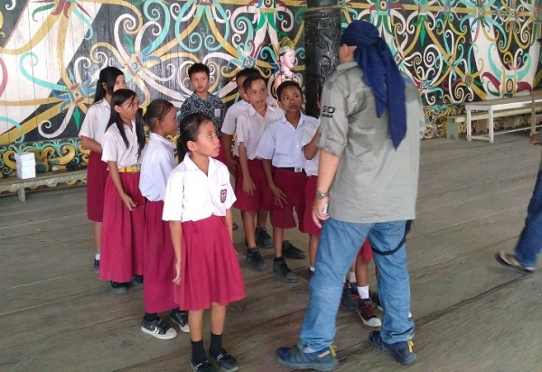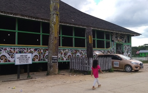 Angka speedometer kami saat itu menunjukkan angka 8517, artinya kami sudah melakukan perjalanan sejauh 190 km dari titik Q Hotel, Kota Sangatta yang kami tempuh selama 6,5 jam perjalanan, ketika semua risers Datsun Risers Expedition diajak oleh official untuk berbagi CSR kepada anak-anak usia sekolah suku dayak di desa Miau Baru, Kecamatan Kombeng, Kabupaten Kutai Timur. Desa yang selama ini lebih dikenal sebagai salah satu destinasi wisata budaya ini, memang luar biasa. Selain masih menjaga tradisi adat dayak dengan baik, dibuktikan dengan masih terjaganya lamin atau rumah panjang sebagai simbol adat yang terus difungsikan, dipertahankan dan dilestarikan sampai detik ini.