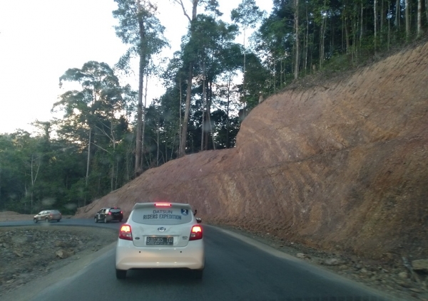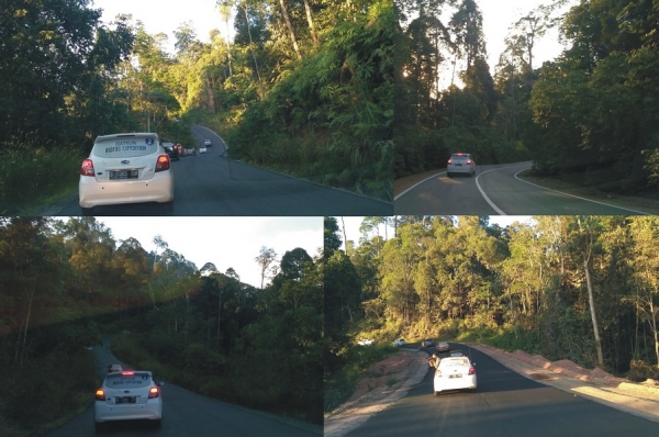Setelah semua rangkaian acara CSR Datsun berakhir, kami risers dan semua rombongan berpamitan kepada tetua adat setempat untuk melanjutkan peejalanan kami menuju Tanjung Redeb dengan estimasi perjalanan sekitar 5 jam perjalanan. Tidak seperti perjalanan Kota Sangatta-Desa Miau Baru yang kiri kanan kami sepanjang perjalanan didominasi lahan tambang yang gersang dan vegetasi kebun sawit, peejalanan dari Desa adat Dayak Miau Baru menuju Tanjung Redeb, yang berjarak sekitar 170km lebih didominasi oleh hijaunya hutan hujan tropis Kalimantan yang masih perawan dengan pohon-pohon tinggi dengan kerapatan yang masih terjaga dengan baik. Meskipun kontur jalanan yang kami lalui masih sama seperti roller coaster tapi setidaknya pemandangan hijau disekitar kami bisa membuat segar mata dan paru-paru kami, sehingga mengurangi rasa jenuh dan lelah kami para risers setelah menempuh perjalanan jauh.