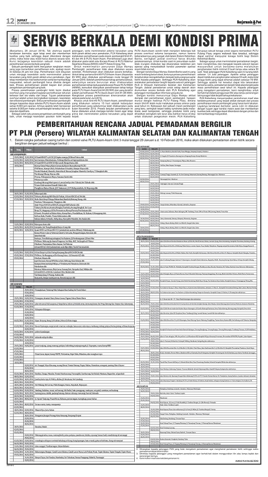 merujuk pada pengumuman yang dipasang PLN di Harian Banjarmasin Post, hari ini