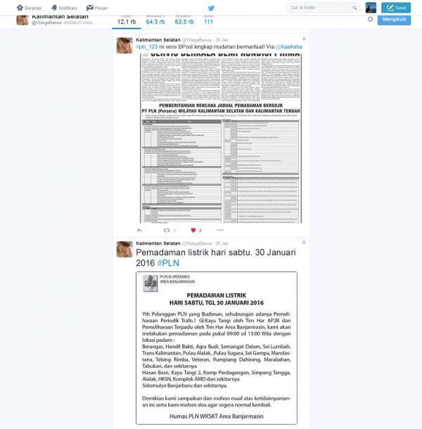 berapa lama masuk pesan Twitter dari @wargabanua memberikan informasi yang sama