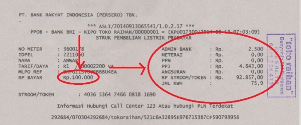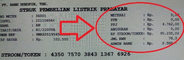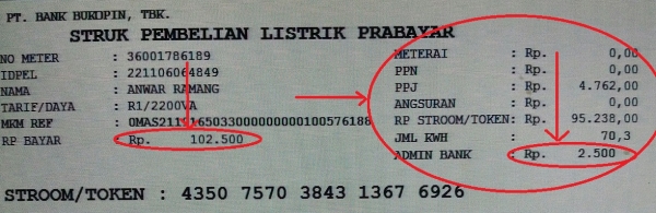 adm pembelian pulsa token listrik sebesar Rp.2500-3000,- (tergantung bank